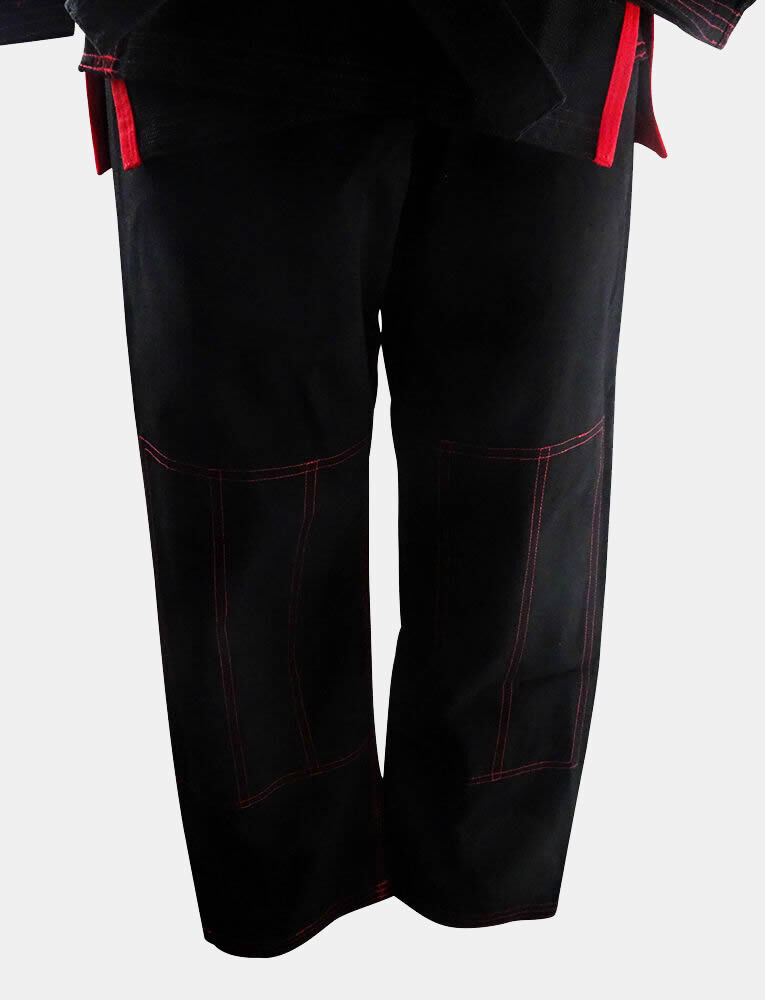The choice of materials in martial arts gear significantly impacts an athlete’s performance and overall experience. In the case of the Black Jiu Jitsu Gi–Red Trim, premium materials are carefully selected to ensure durability, comfort, and functionality during training and competitions. The 350 gsm pearl weave jacket is ideal for hot climate training, offering a balance between strength and breathability. This lightweight yet sturdy fabric allows for fluid movements and agility while providing sufficient resistance to wear and tear.